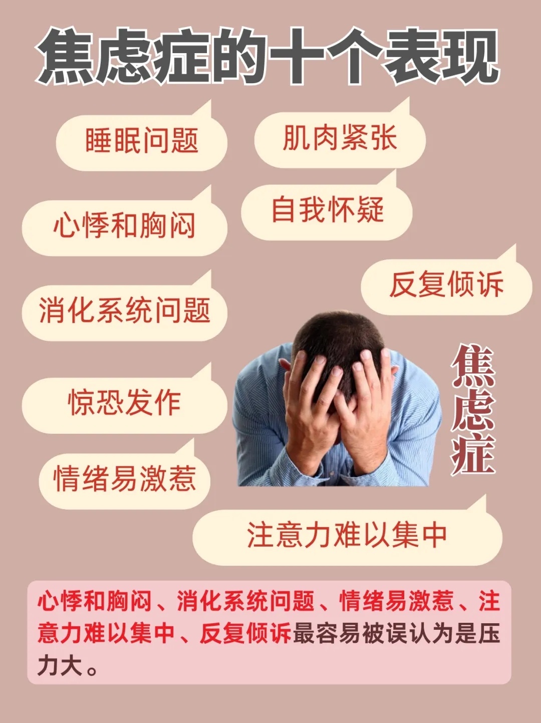 以下是一些需要警惕的信号:持续不断的担忧感;回避日常活动或场合;突然的恐慌发作伴有身体症状;睡眠问题,如难以入睡或保持睡眠;焦虑导致的消化系统问题。